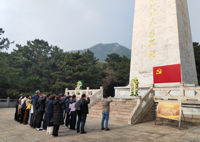 当日上午,全体党员怀着无比崇敬的心情,抵达庄严肃穆的盘山烈士陵园。在盘山革命纪念馆里,一件件珍贵的革命文物、一幅幅真实的历史照片、一段段翔实的文字记载,仿佛将所有党员的思绪带回到了抗日战争时期。大家聆听讲解、驻足凝视,无不被革命先烈们坚定的理想信念、视死如归的英雄气概所深深震撼。在革命烈士纪念碑前,大家列队肃立,在支部主要负责同志的带领下,全体党员面向鲜红的党旗,高举右拳,重温入党誓词。
