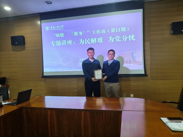 活动最后,党委办公室(校长办公室)副主任谢光勇为仵思伟颁发了工作坊纪念牌。